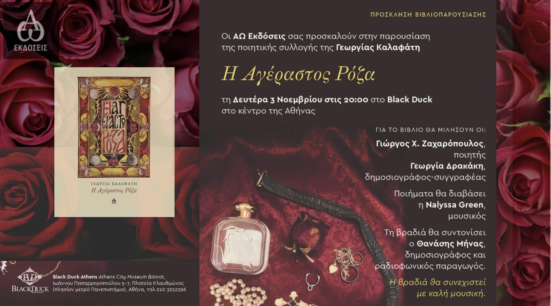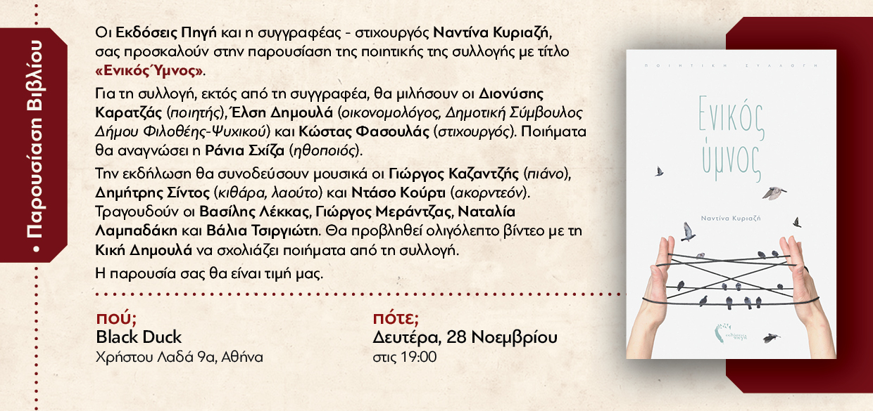 Για το βιβλίο θα μιλήσουν ο ποιητής, Γιώργος Σκανδάλης και η Γεωργία Δρακάκη, δημοσιογράφος και επιμελήτρια της έκδοσης.