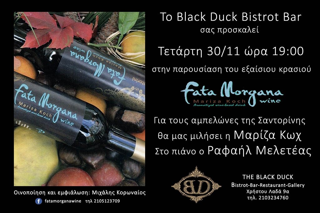 Το Black Duck προσκαλεί τους φίλους του οικογενειακού κρασιού της Μαρίζας Κωχ «Fata Morgana» σε μια γιορτινή συνάντηση την