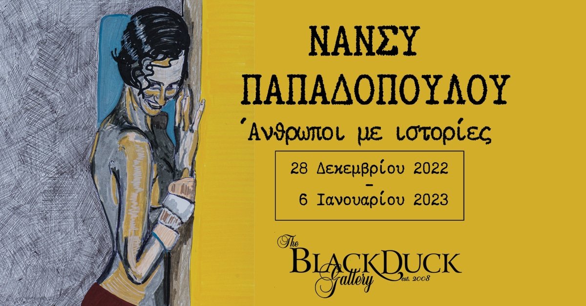 Η γκαλερί του Black Duck παρουσιάζει την έκθεση της Νάνσυ Παπαδοπούλου με τίτλο «Άνθρωποι με ιστορίες» από τις 28 Δεκεμβρίου 2022 έως και τις 6 Ιανουαρίου 2023