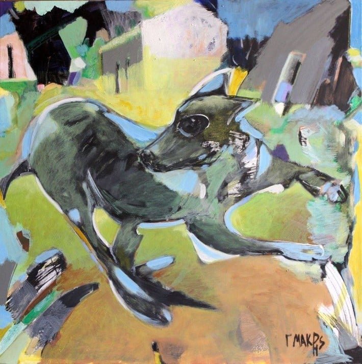 Η ζωγραφική του Γ. Μακρή είναι σχεδόν πάντοτε ανθρωποκεντρική. Με